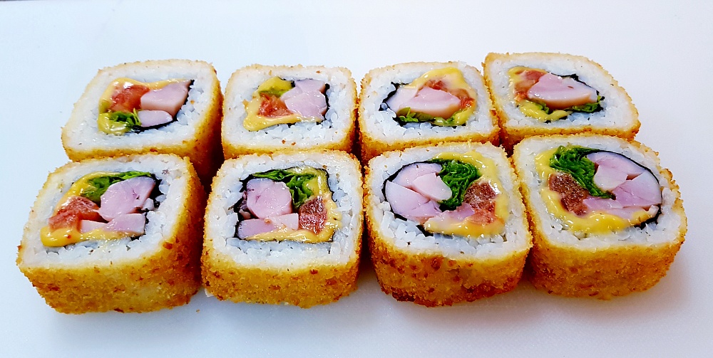 Düyü, yapon mayonezi, krab, qırmızı kürü, xiyar