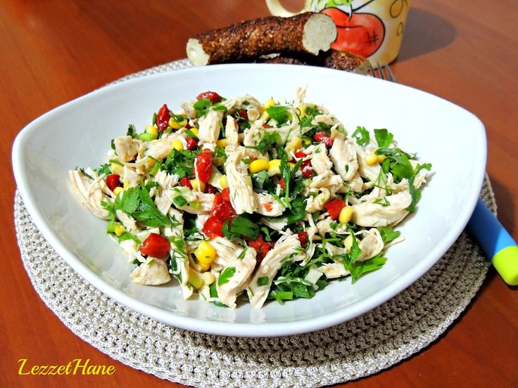 Toyuq əti, pomidor, xiyar, cəfəri,