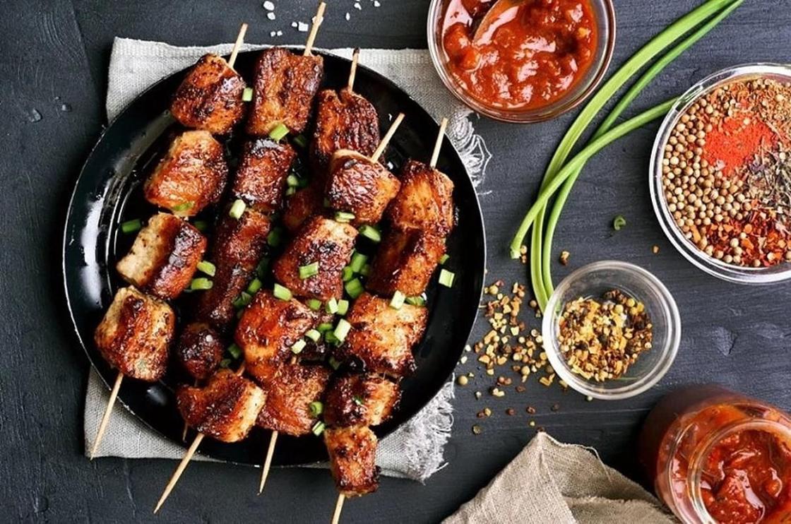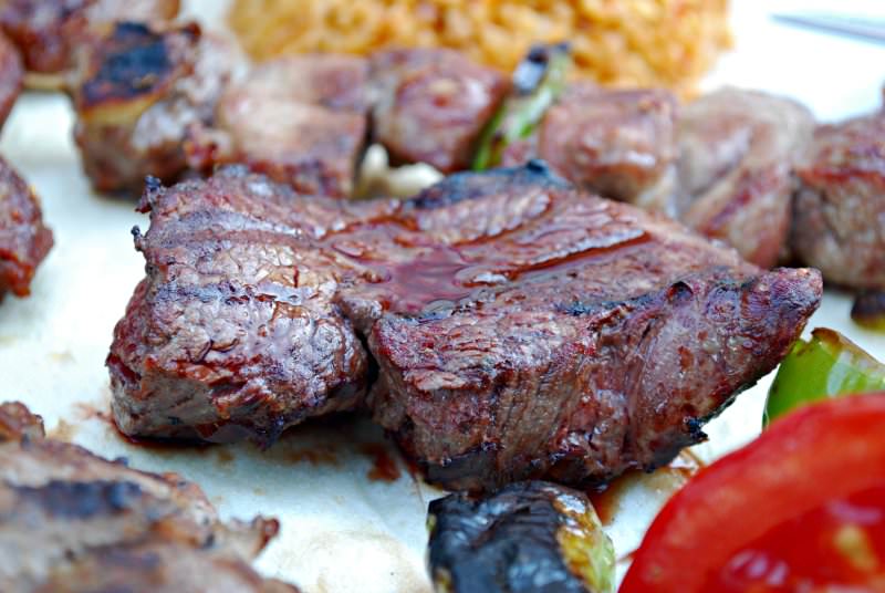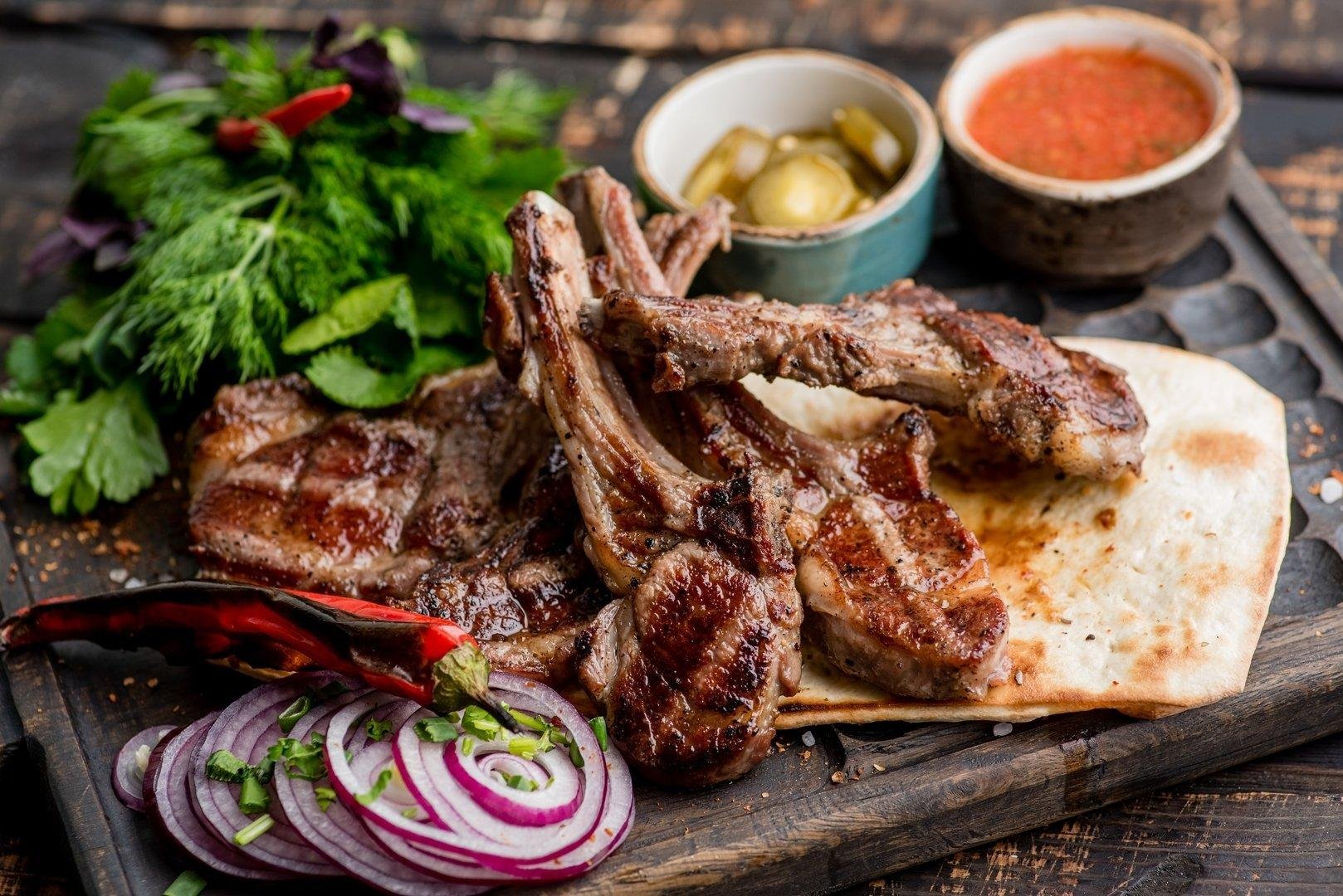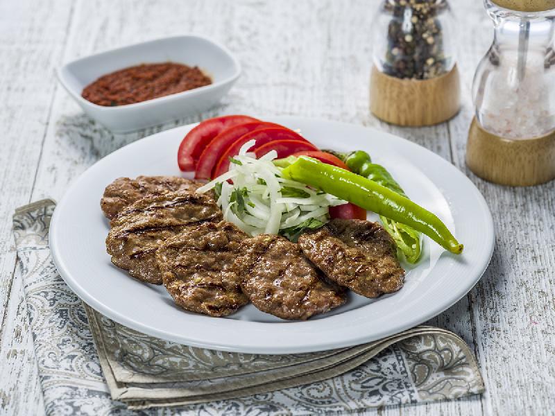 Mal əti, pomidor, cəfəri, qırmızı soğan, limon, acı bibər, qatıq