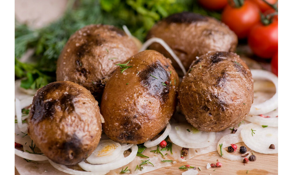 toyuq əti, mal əti, göbələk, pomidor,