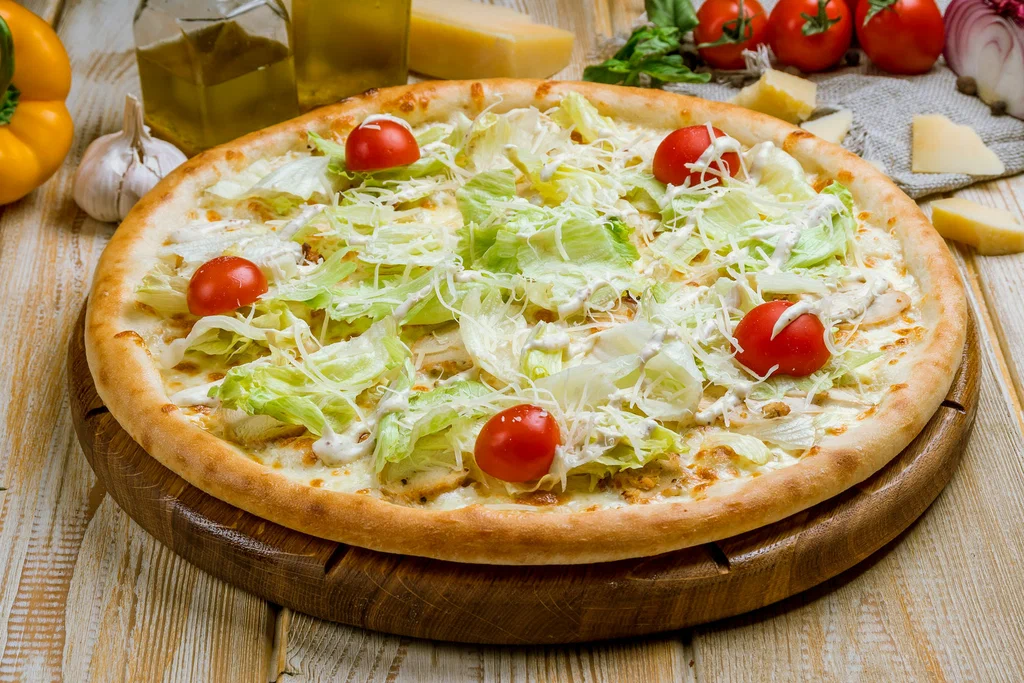 Aysberq kahısı, toyuq filesi, sezar sousu, cherry pomidor